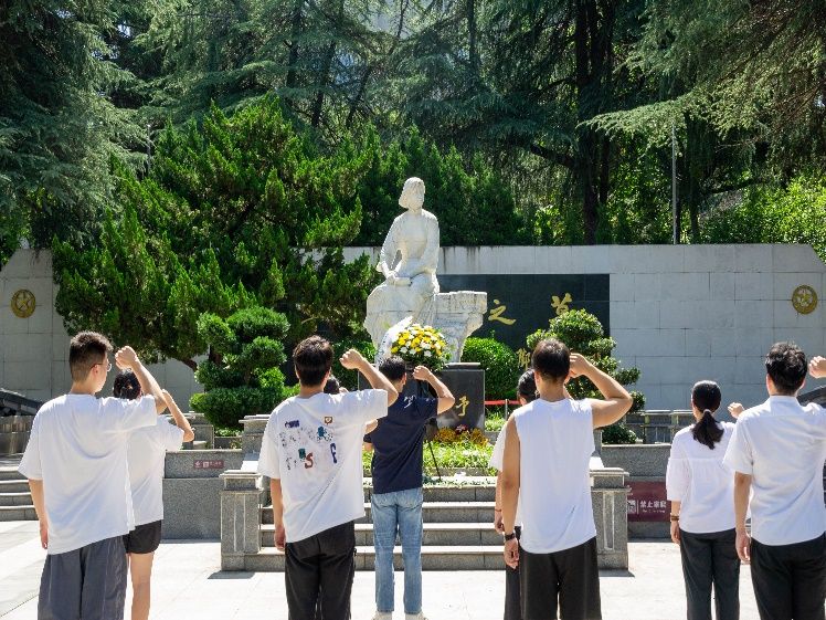 团队指导老师税翀宇现场讲授微党课,强调在党的生日瞻仰以身许党的巾帼英烈,意义非凡:“就是要深刻铭记‘为中国人民谋幸福,为中华民族谋复兴’的初心密码,将向警予‘忠诚印寸心,浩然充两间’的精神品格,转化为服务制造强国战略的实干担当!