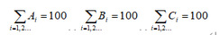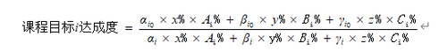 根据课程目标对各专业毕业要求指标点的支撑情况,首先根据不同的课程目标考核中各个环节的成绩,如试卷、作业、实验报告和专题研讨等计算各课程目标的达成度。例如,某门课程的考核环节为考试、平时作业和专题研讨,总成绩中考试占x%,平时作业占y%,专题研讨占z%,其中,x+y+z=100。若课程目标i对应的卷面分占总卷面分的Ai%,作业分占全部作业分的Bi%,专题研讨分占全部专题研讨分的Ci%。其中,