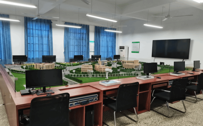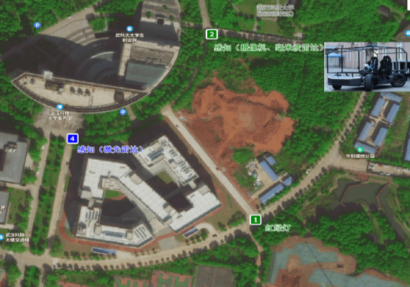 (a) 测试道路鸟瞰图 (b) 智能交通仿真实验室