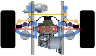底盘新构型设计:开发面向多功能、模块化、集成化、智能化的分布式驱动新构型底盘。驱动系统模块化,满足两驱、四驱或多轴驱动的任意组合。传动系统紧凑高效,实现系列化,满足单动力(单电机)驱动或双动力(双电机或电机与发动机)驱动的任意转换。
