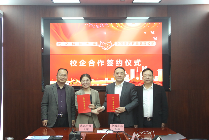 (通讯员 周东东 李苑)4月6日下午,武汉科技大学汽车与交通工程学院与中建五局土木武汉分公司校企合作签约仪式在中建五局土木武汉分公司会议厅顺利举行。中建五局土木公司总经济师、总法律顾问阳万成,中建五局土木武汉分公司党委书记、总经理王先荣,综合办公室主任李玲,汽车与交通工程学院党委书记李建军,党委副书记郝春艳,毕业生辅导员李苑及相关人员参加了签约仪式。