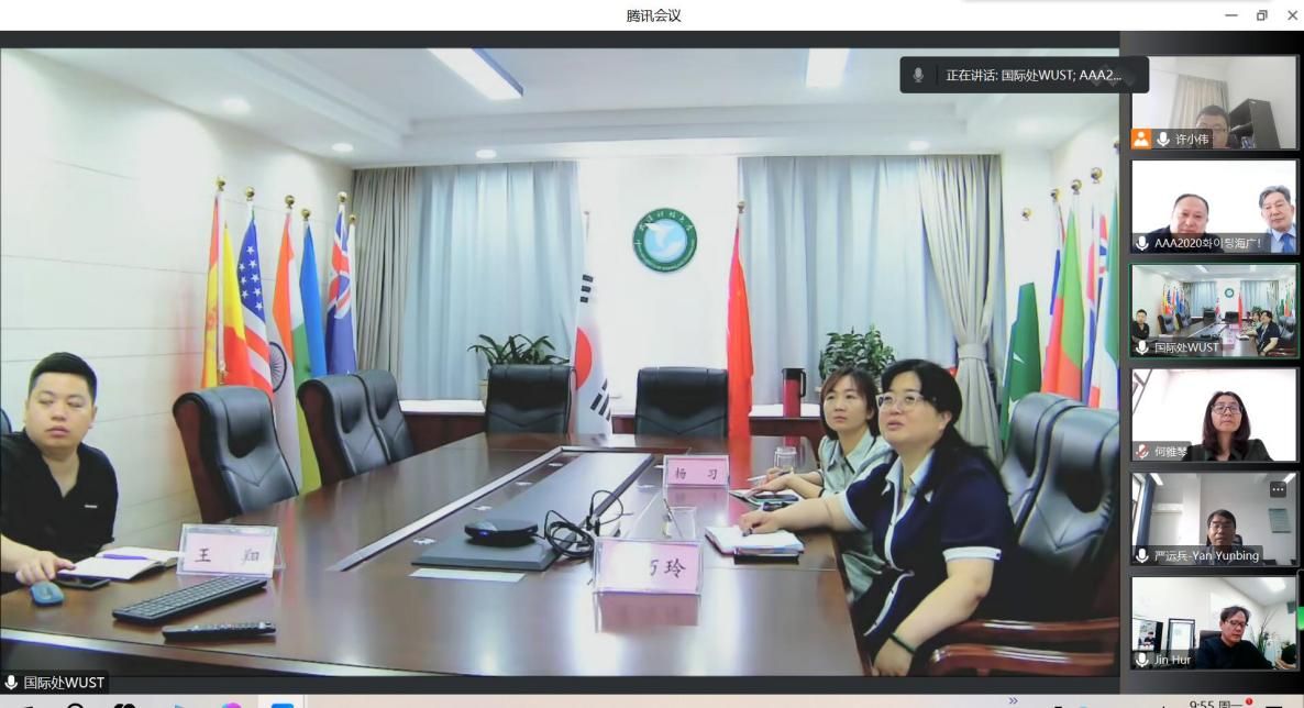2023年5月29日上午9点,韩国国立仁川大学与古天乐太阳娱乐集团tyc493通过线上会议进行了国际合作交流。参加会议的有韩国国立仁川大学前校长李甲泳教授、国立仁川大学未来汽车研发中心主任许真教授、古天乐太阳娱乐集团tyc493国际合作交流处处长肖巧玲、副处长杨习、古天乐太阳娱乐集团tyc493院长严运兵、副院长许小伟等。
