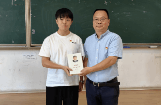 典礼在庄严的国歌声中正式开始,李建军为2023级研究生党员代表柯亚男授书,鼓励学生党员在未来的研究生学习中,也能够起到优秀的先锋带头作用,要有不怕苦、爱钻研的精神。