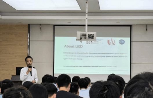 报告题目为“能源的跨学科研究——来自材料科学和多重物理学的启示”,郭教授以多学科交叉的意义引入主题,结合道路防冰除冰解决方案、导电涂层性能、建筑光/热敏变色材料、植物上露水收集、液滴振动及融合等案例,向我院师生介绍巴黎西岱大学的跨学科科研方向以及其研究室取得的研究进展。通过报告会上与郭教授的深入交流,我院师生纷纷表示在科研方向上获得很大的启发,这对于未来的科研工作十分有帮助。
