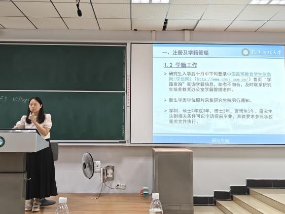 楚文慧则对学期注册、学籍管理、培养环节、学位授予、奖励资助体系等方面进行了详细解释,确保新生们对研究生培养、教育管理体系有清晰的认识。