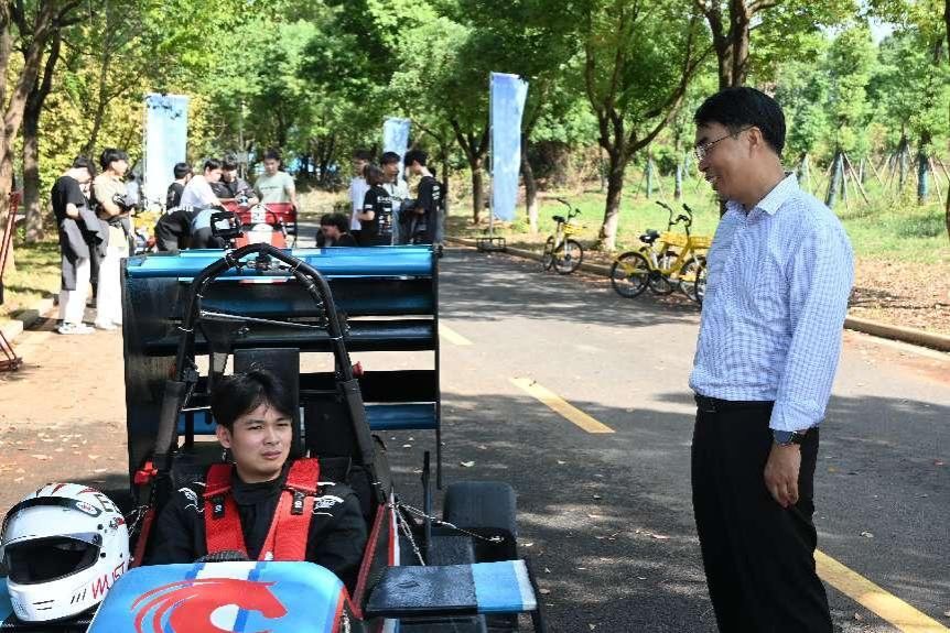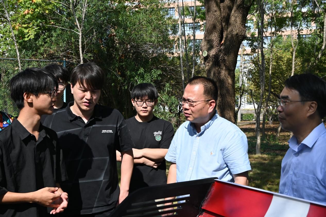 赛前,学院为赤骥车队举行了出征仪式,李书记和严院长出席了出征仪式,并去训练场观摩了赛车的训练。仪式完毕后,书记和院长与队员亲切交谈,向队员提出了安全注意事项,并预祝车队斩获佳绩。